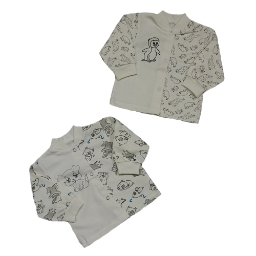 Кофточка с длинным рукавом, спереди на кнопочках, в виде украшения нанесён на одну полочку спереди принт.