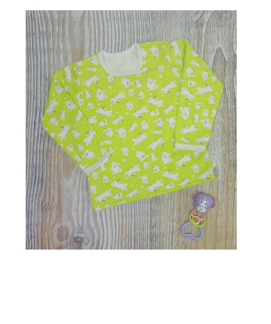 Кофточка выполнена из футера с начёсом, с 2 кнопочками на одном плече.