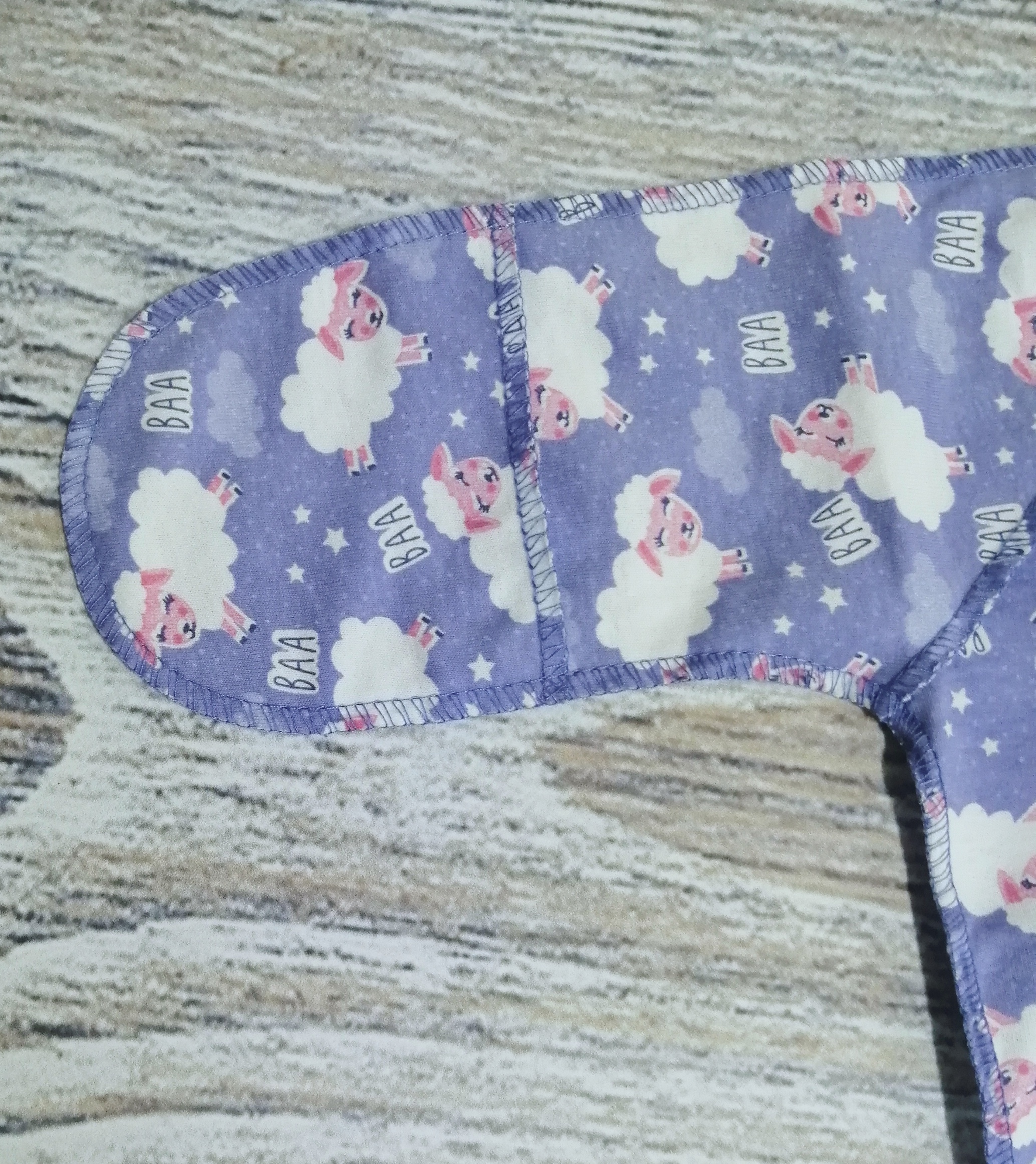 Комбинезон с закрытыми ножками, с рукавчиками-трансформерами, с кнопочками спереди и между ножек, со швами наружу.