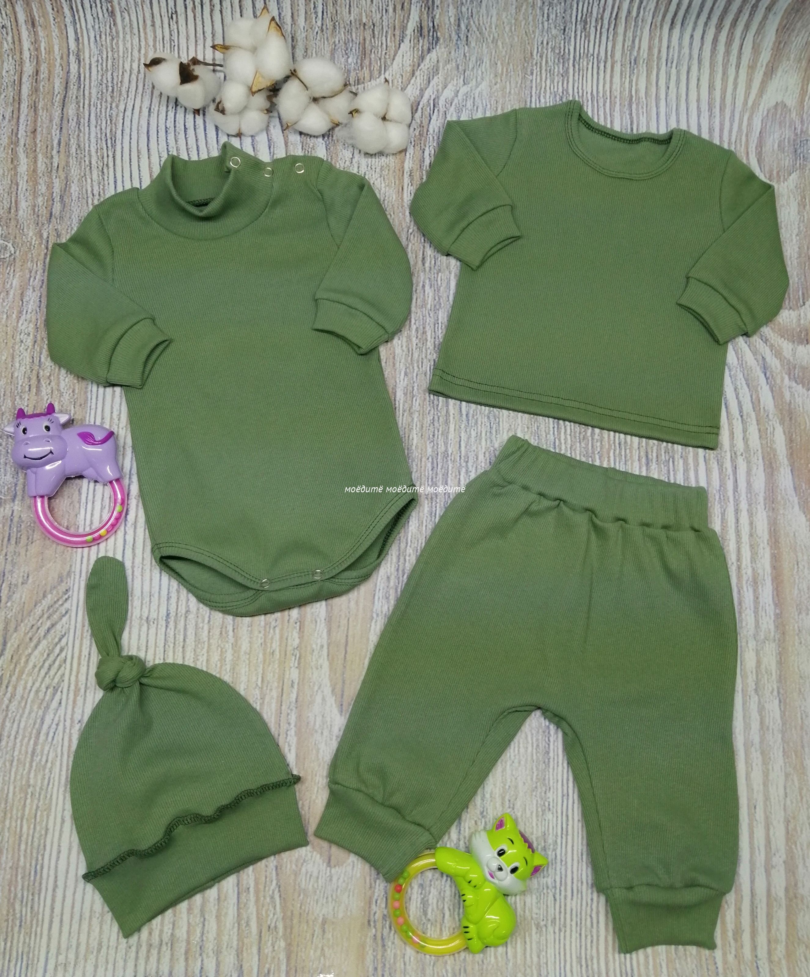 2. Штанишек на широком поясе с резинкой, снизу на манжетах.